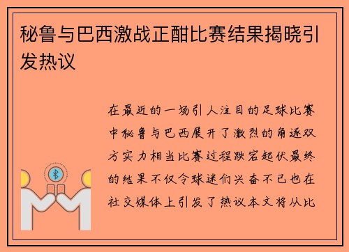 秘鲁与巴西激战正酣比赛结果揭晓引发热议